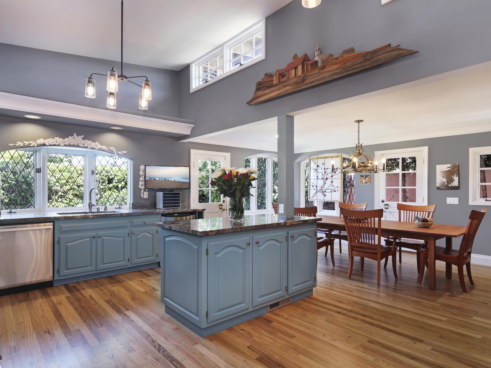 Wallpaper Large beautiful kitchen in gray with a wooden table