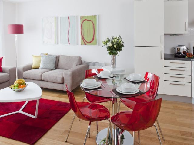 Wallpaper The interior of the kitchen is combined with the living room.