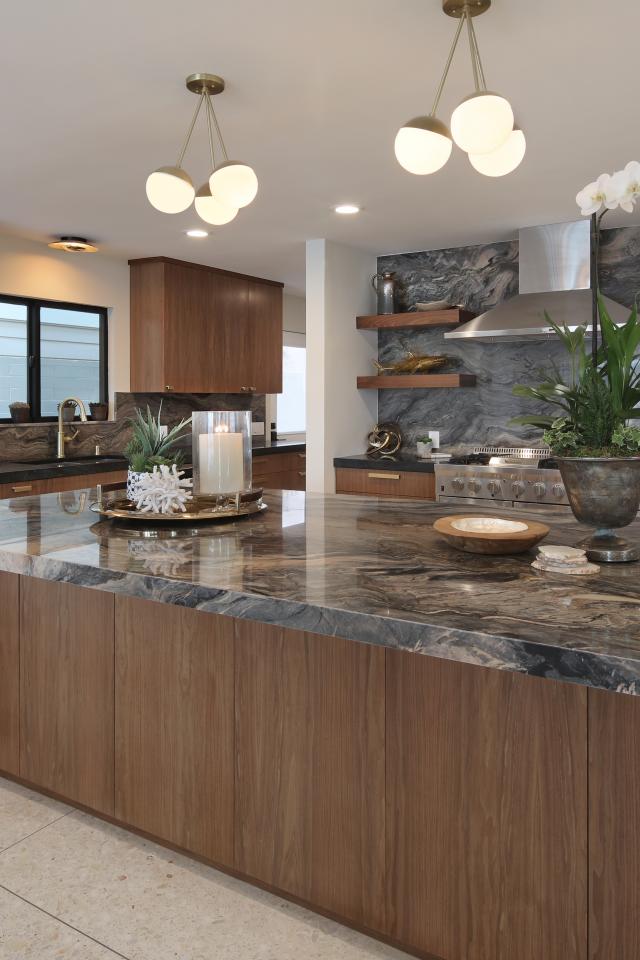 Wallpaper Beautiful brown kitchen with granite tables
