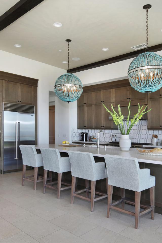 Wallpaper Huge kitchen with dining room with a bouquet of flowers on the table