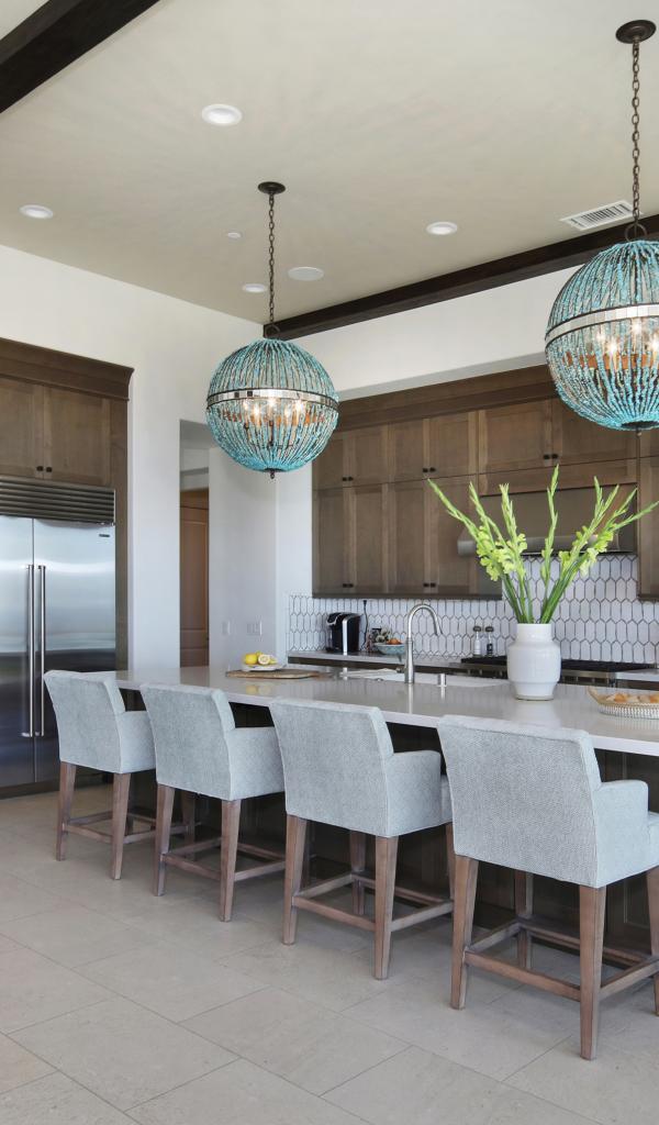 Wallpaper Huge kitchen with dining room with a bouquet of flowers on the table