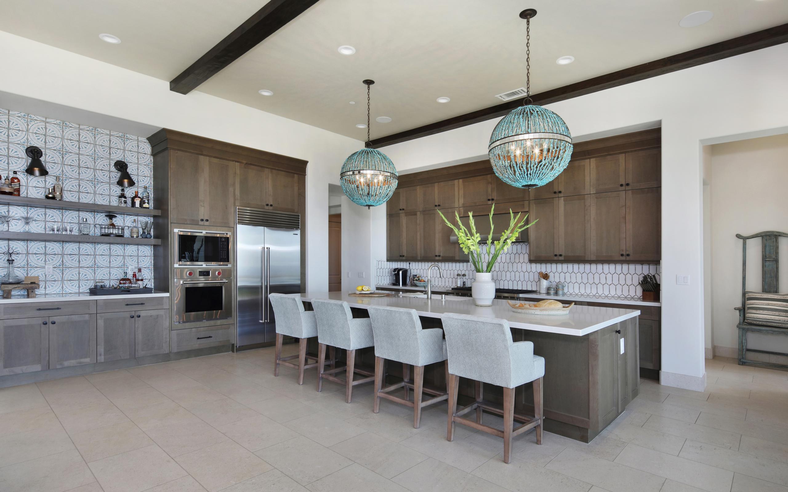 Wallpaper Huge kitchen with dining room with a bouquet of flowers on the table