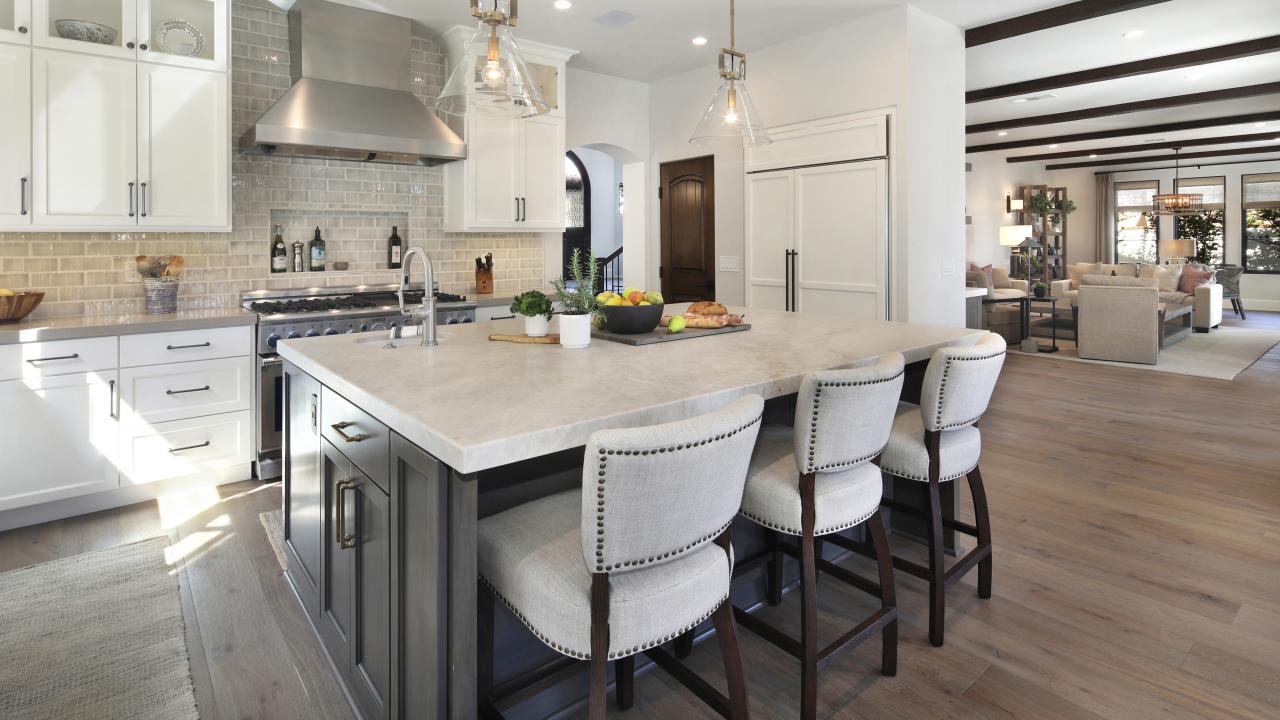 Wallpaper Large bright kitchen with marble countertops