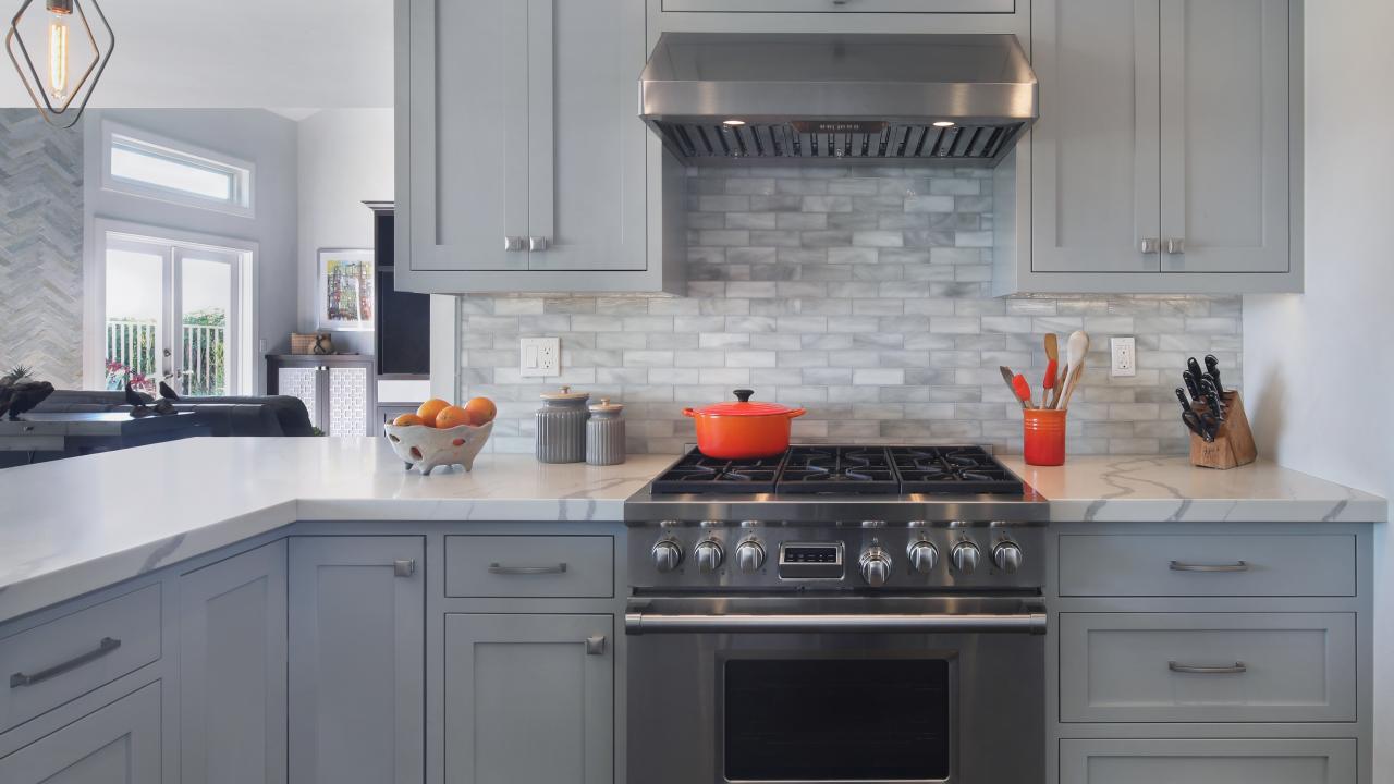Wallpaper Large gray kitchen with large stove