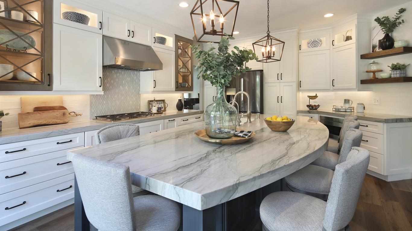 Wallpaper Large beautiful kitchen in gray with a wooden table
