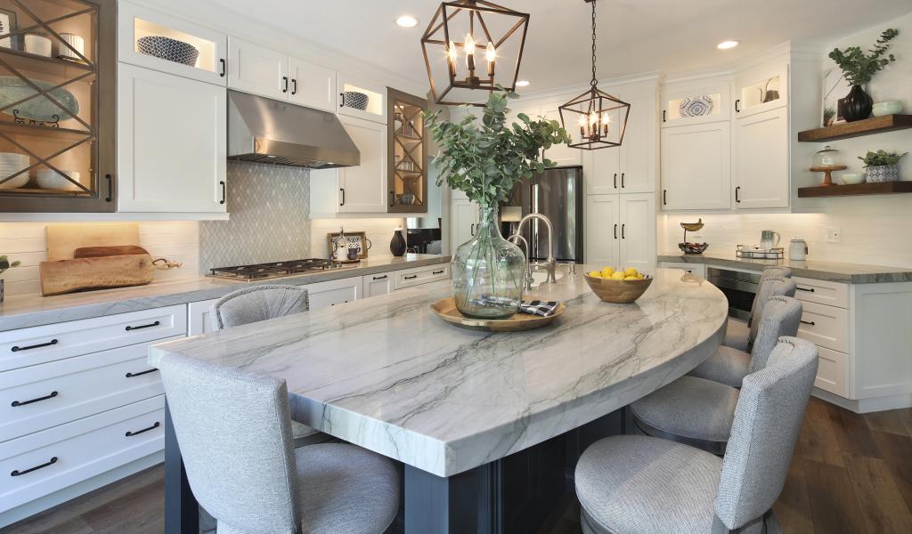 Wallpaper Large marble table in the kitchen