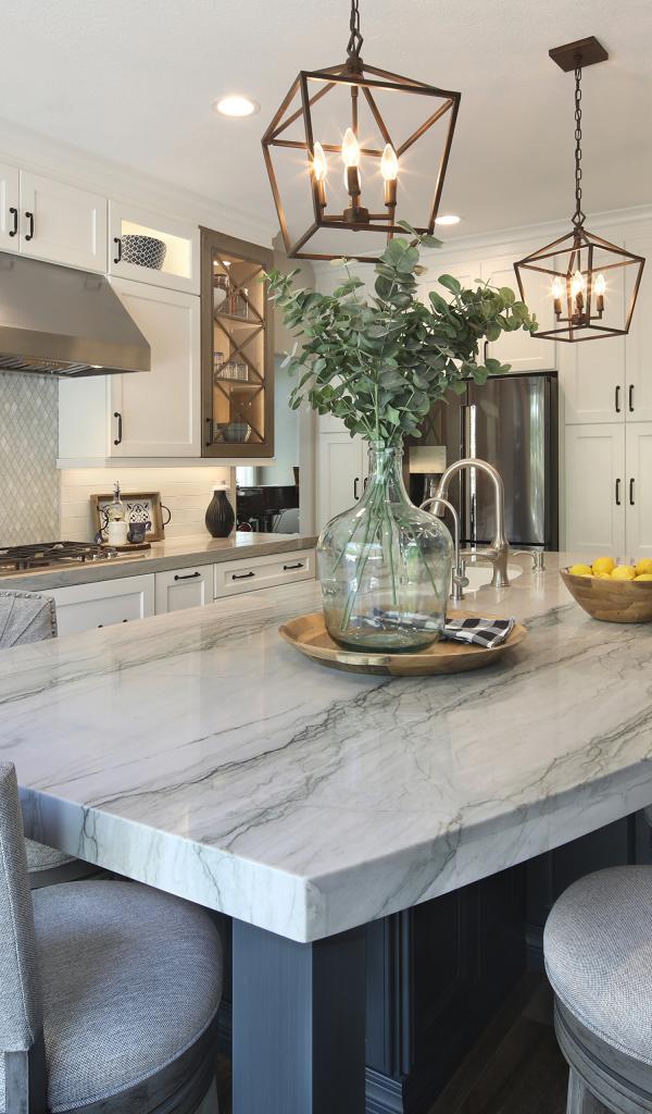 Wallpaper Large marble table in the kitchen