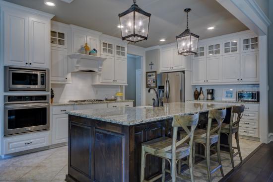 Wallpaper Beautiful bright kitchen with lamps