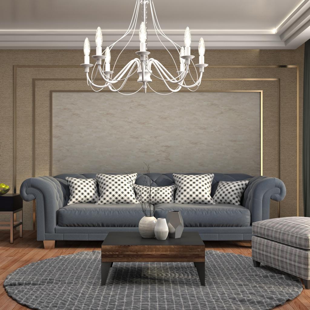 Wallpaper Living room with a large gray sofa
