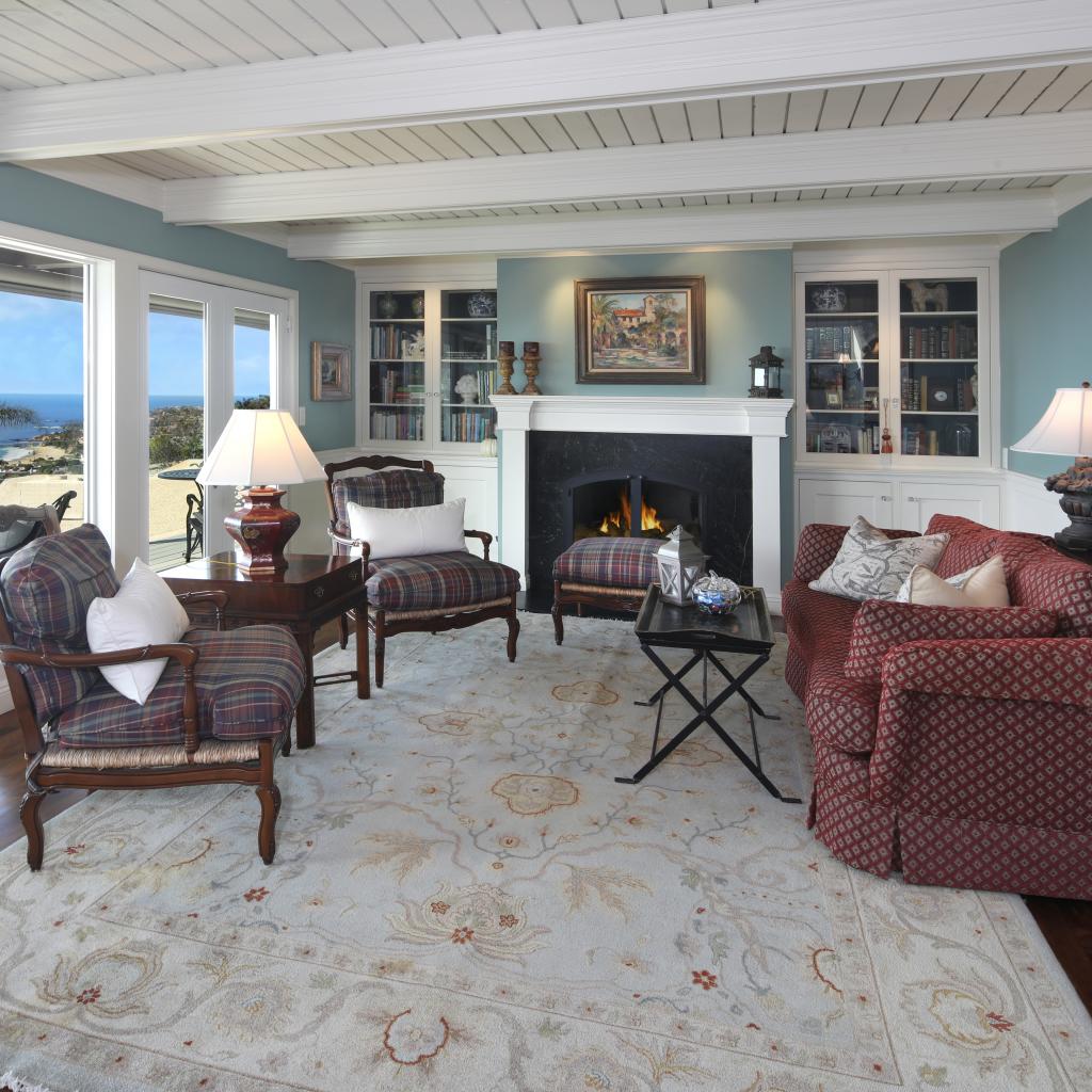 Wallpaper Living room with a large soft sofa, armchairs and a fireplace