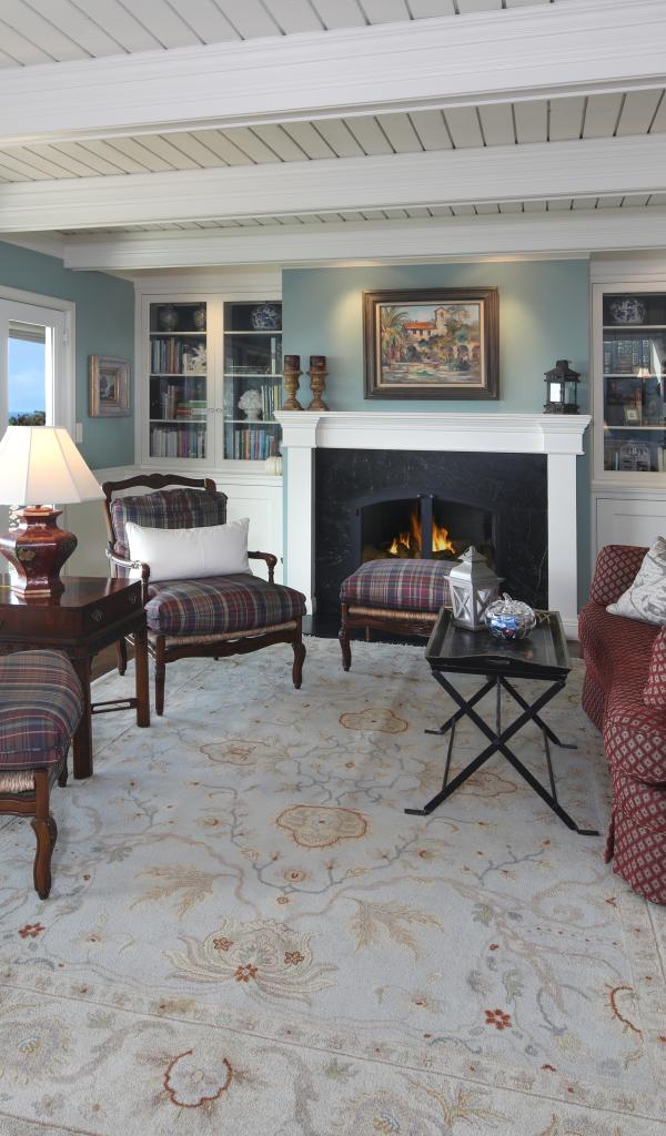 Wallpaper Living room with a large soft sofa, armchairs and a fireplace