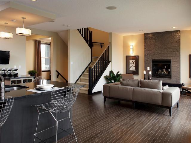 Wallpaper Living room with sofa combined with kitchen