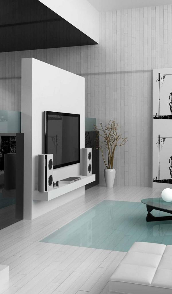 Wallpaper Living room with mirror wall and white sofa