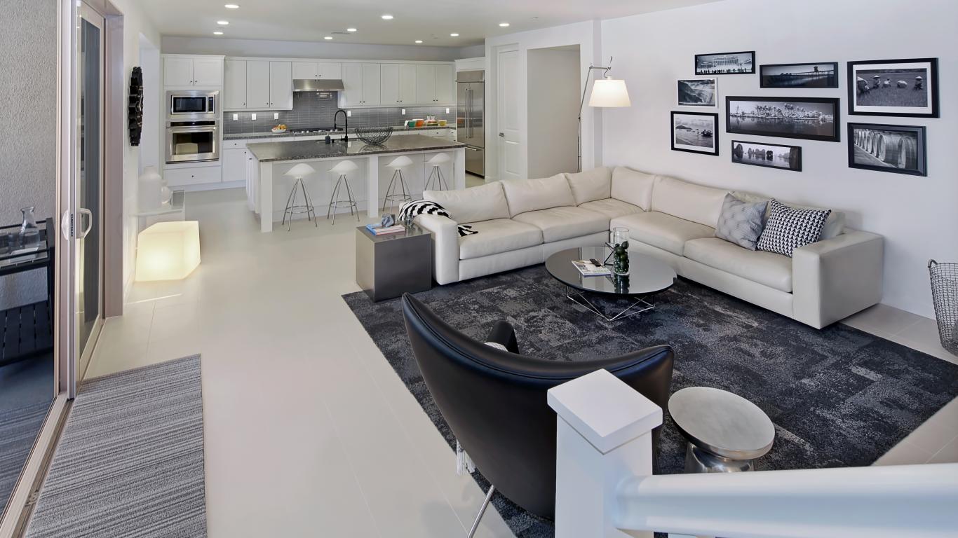Wallpaper Gray living room combined with kitchen