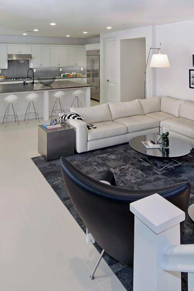 Wallpaper Gray living room combined with kitchen