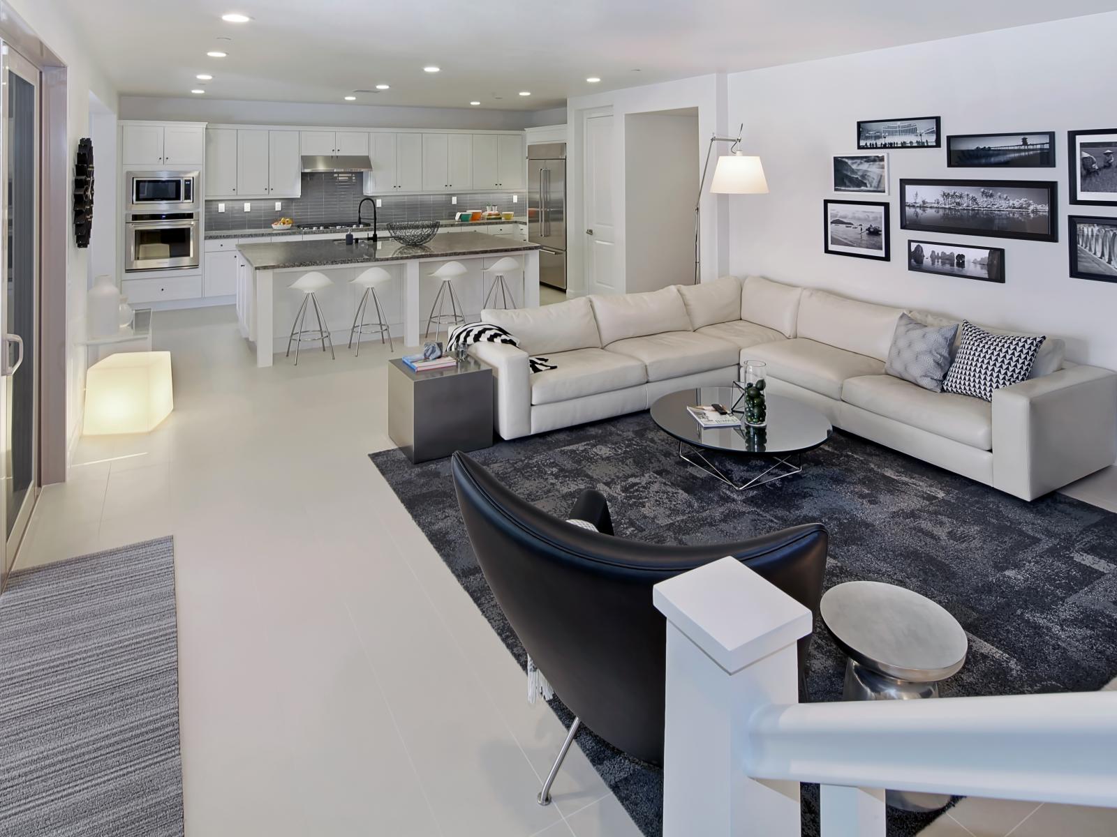 Wallpaper Gray living room combined with kitchen