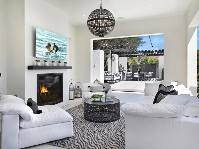 Wallpaper Bright living room with sofa and access to the veranda