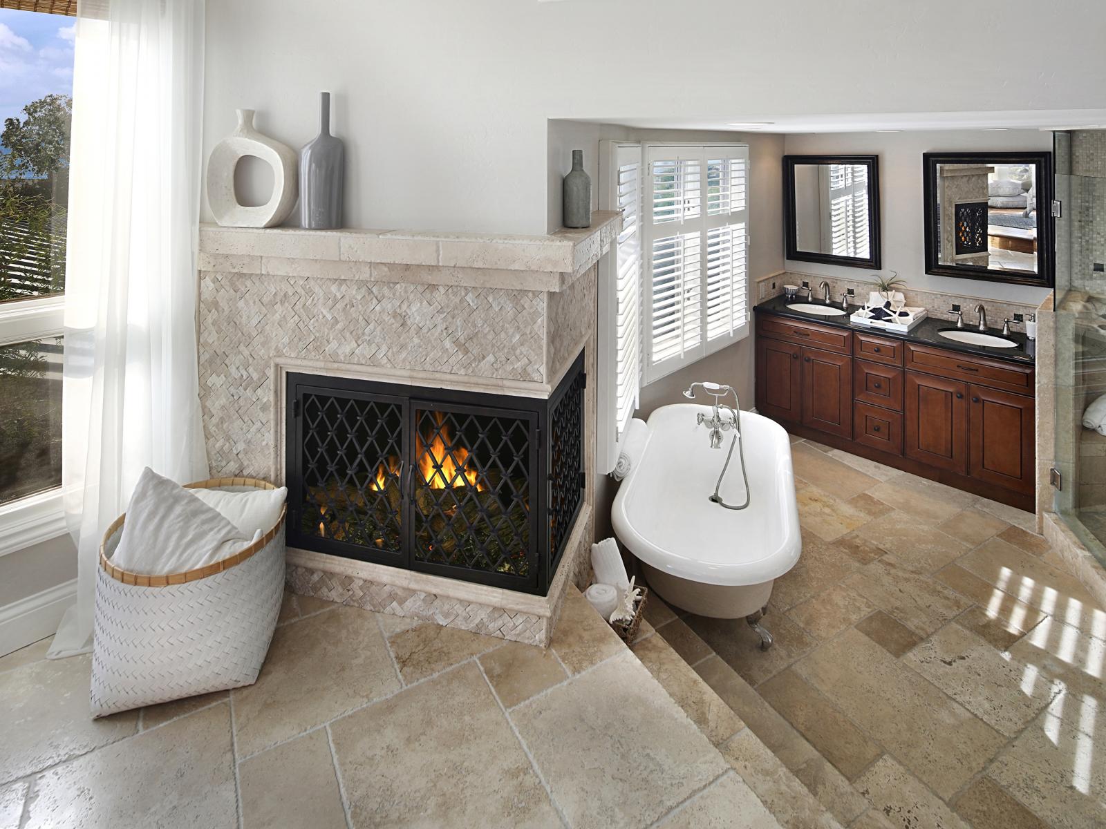 Wallpaper Modern apartment with a spacious bathroom and fireplace