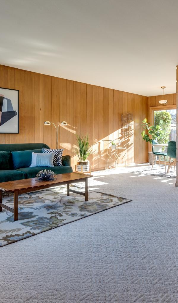 Wallpaper Spacious living room with rustic furniture