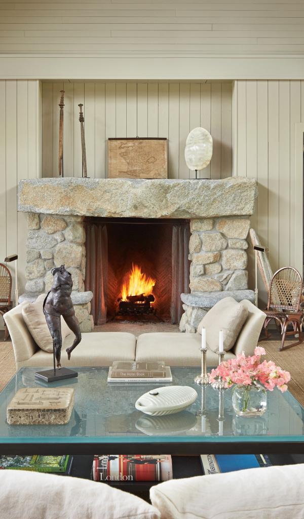 Wallpaper Rich living room interior with fireplace