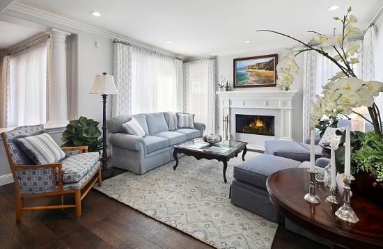 Wallpaper Large living room with a fireplace and fresh flowers