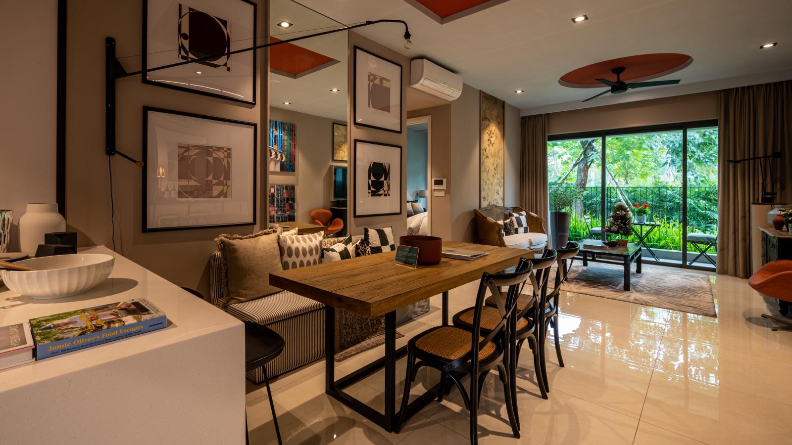 Wallpaper An oak table stands in a spacious living room