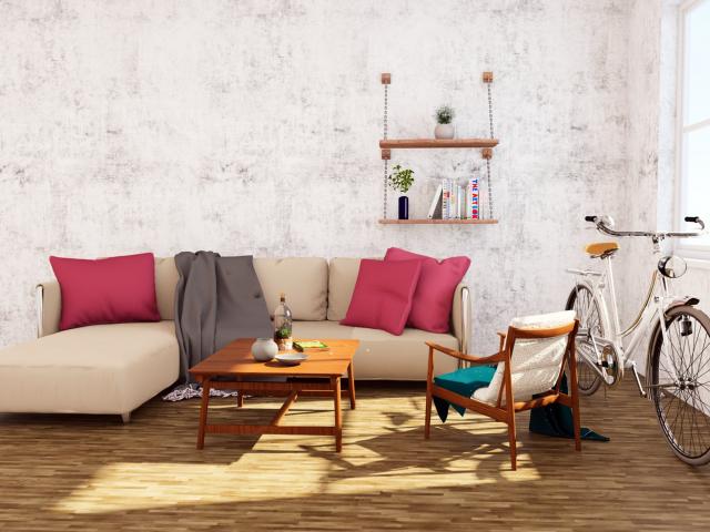 Wallpaper The sofa and the bike are in the room