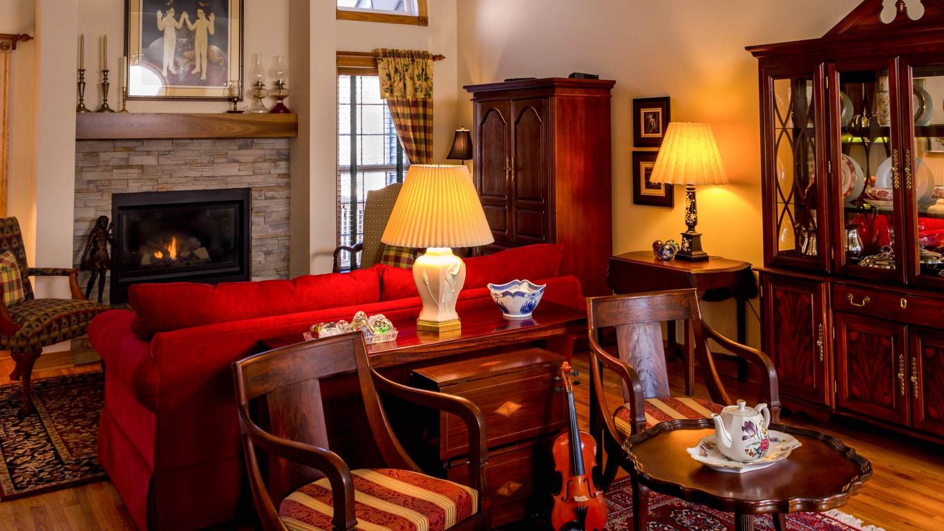 Wallpaper Old furniture in a room with a fireplace