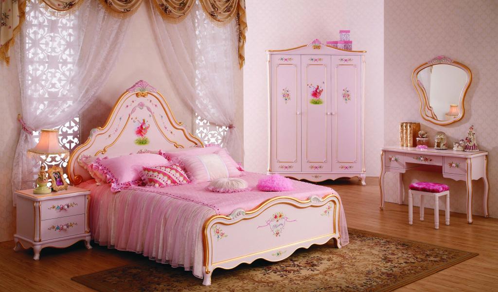 Wallpaper Beautiful children`s bedroom for a girl in a pink dress