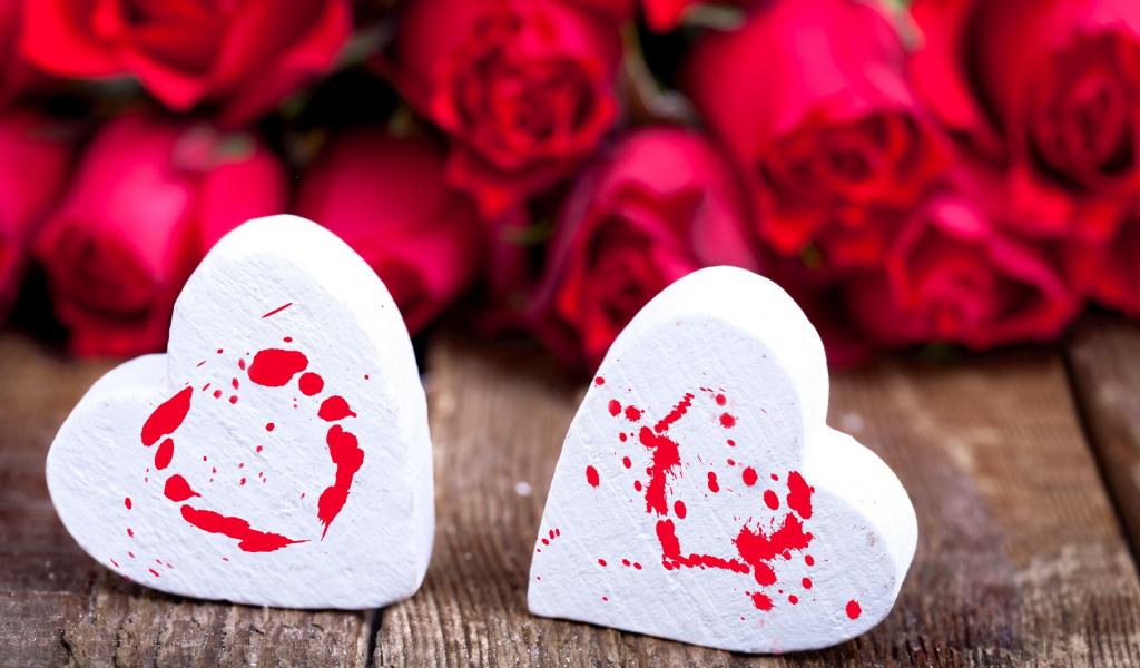 Wallpaper White marshmallow hearts and red roses