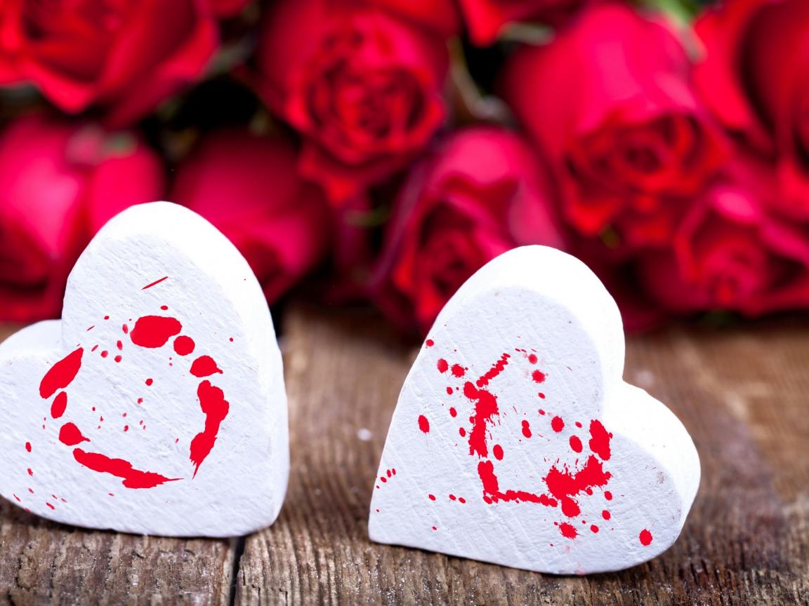 Wallpaper White marshmallow hearts and red roses