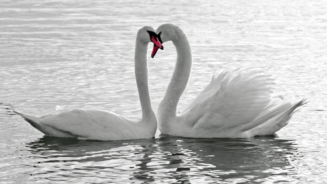 Wallpaper A loving pair of white swans