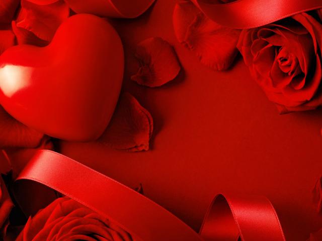 Wallpaper Red heart in a red rose petals