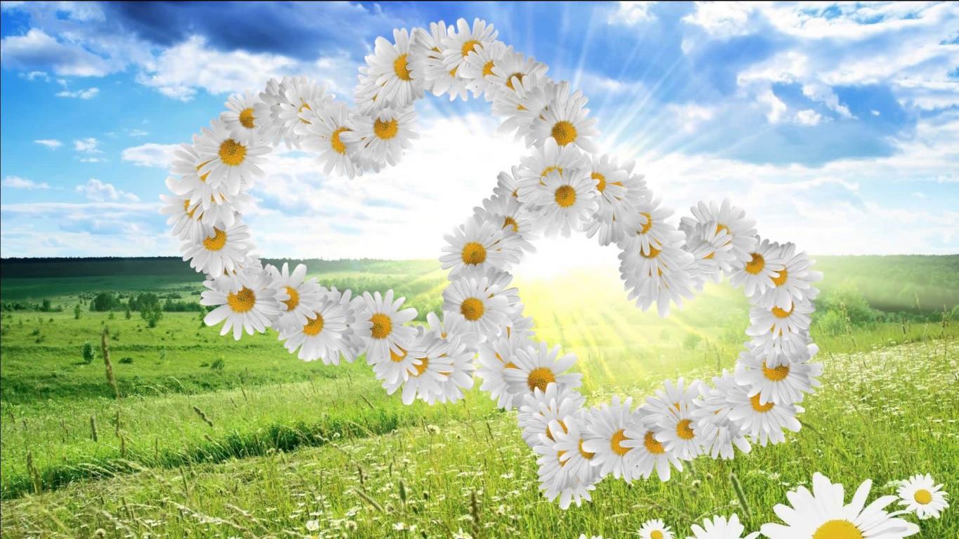 Wallpaper Beautiful hearts of white daisies