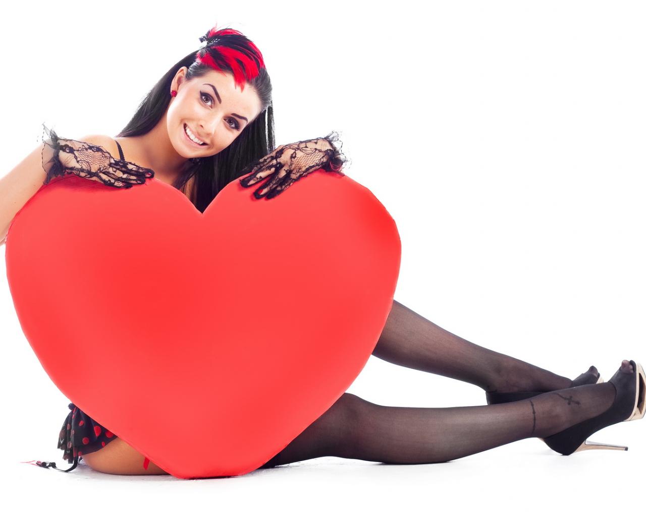 Wallpaper Beautiful girl with big red heart