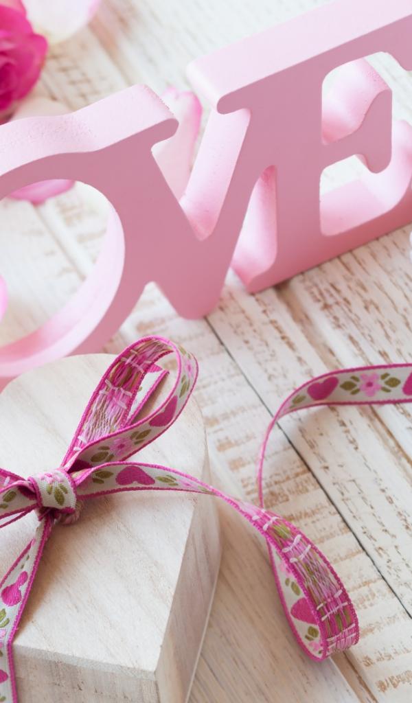 Wallpaper Delicate bouquet of pink roses and inscription Love