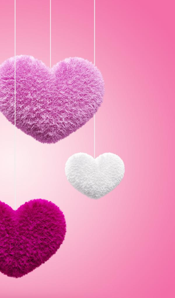 Wallpaper Soft fluffy hearts on a pink background