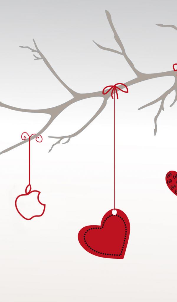 Wallpaper Red hearts on a branch