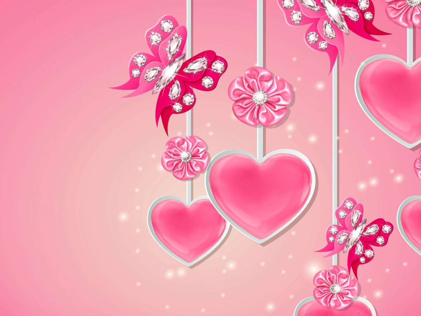 Wallpaper Pink hearts with diamonds