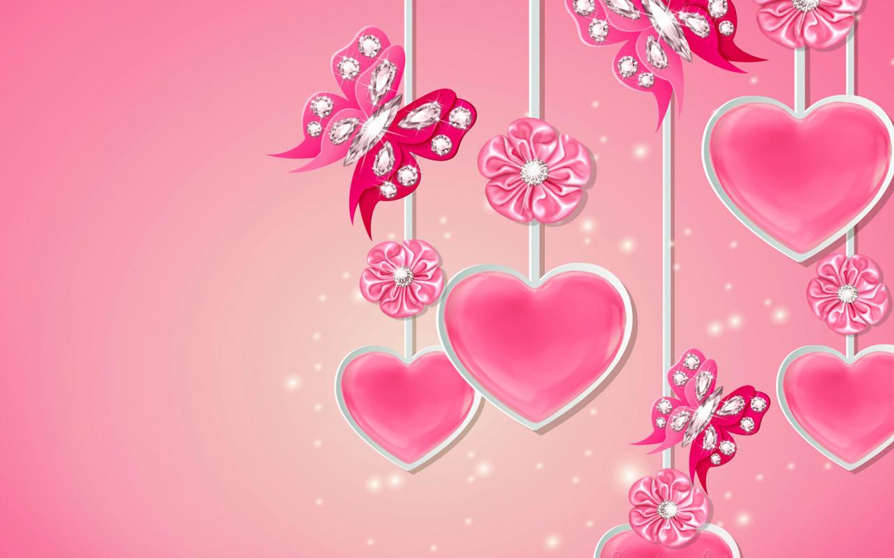 Wallpaper Pink hearts with diamonds