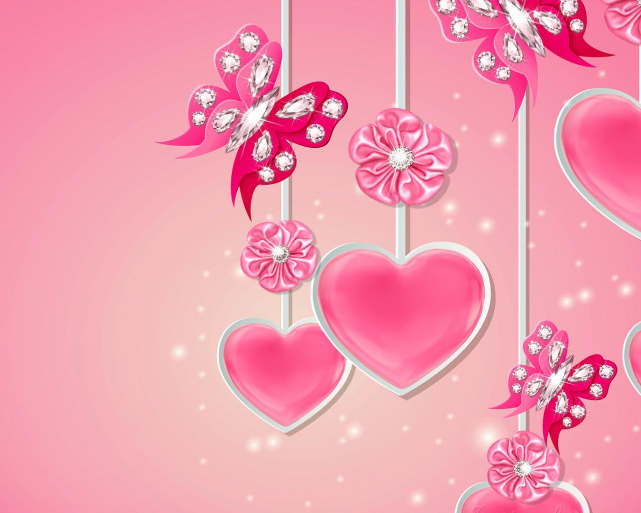 Wallpaper Pink hearts with diamonds