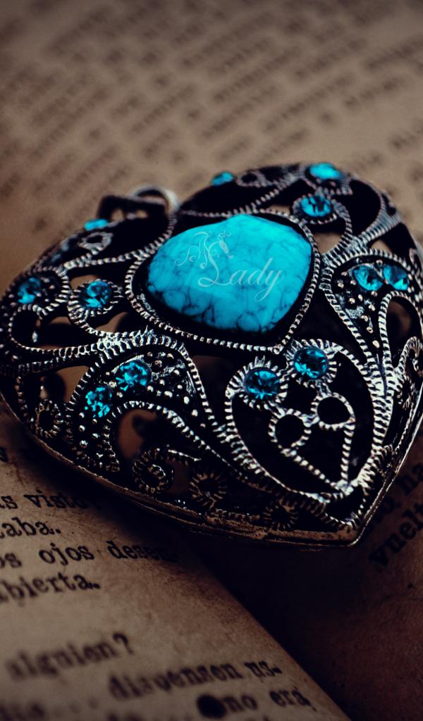 Wallpaper Beautiful heart shaped pendant with blue stone