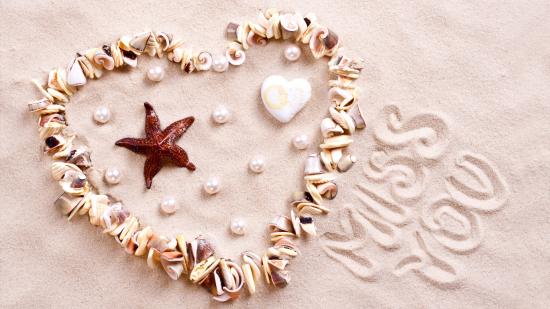 Wallpaper Heart of seashells on sand
