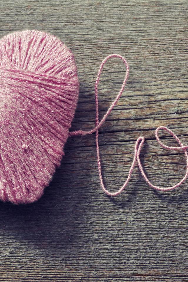 Wallpaper Love inscription made of pink thread on a wooden table