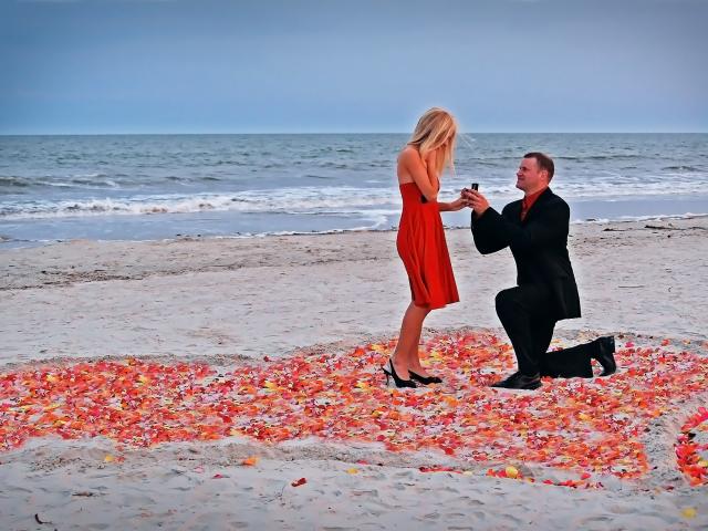 Wallpaper Romantic offer of a hand and a heart by the sea