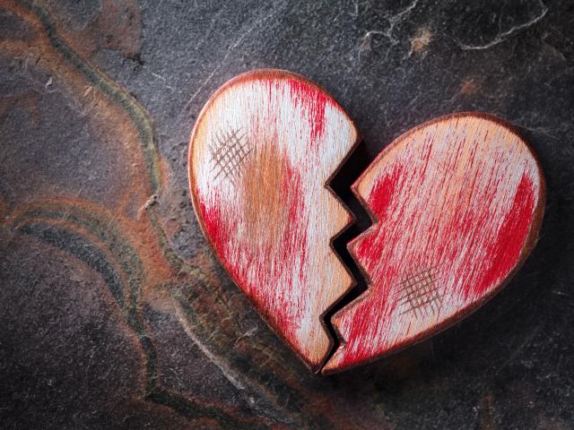 Wallpaper Broken wooden red heart on the table