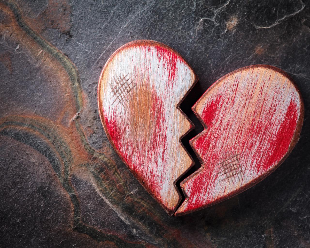 Wallpaper Broken wooden red heart on the table