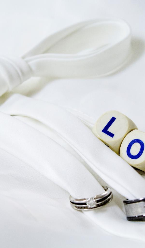 Wallpaper Two rings tied with a white ribbon and cubes with the inscription love