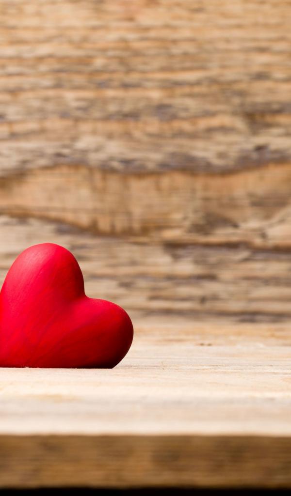 Wallpaper Two red hearts lie on a wooden bench