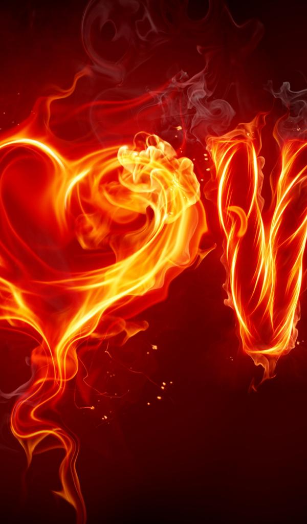 Wallpaper Fiery love lettering on a black background